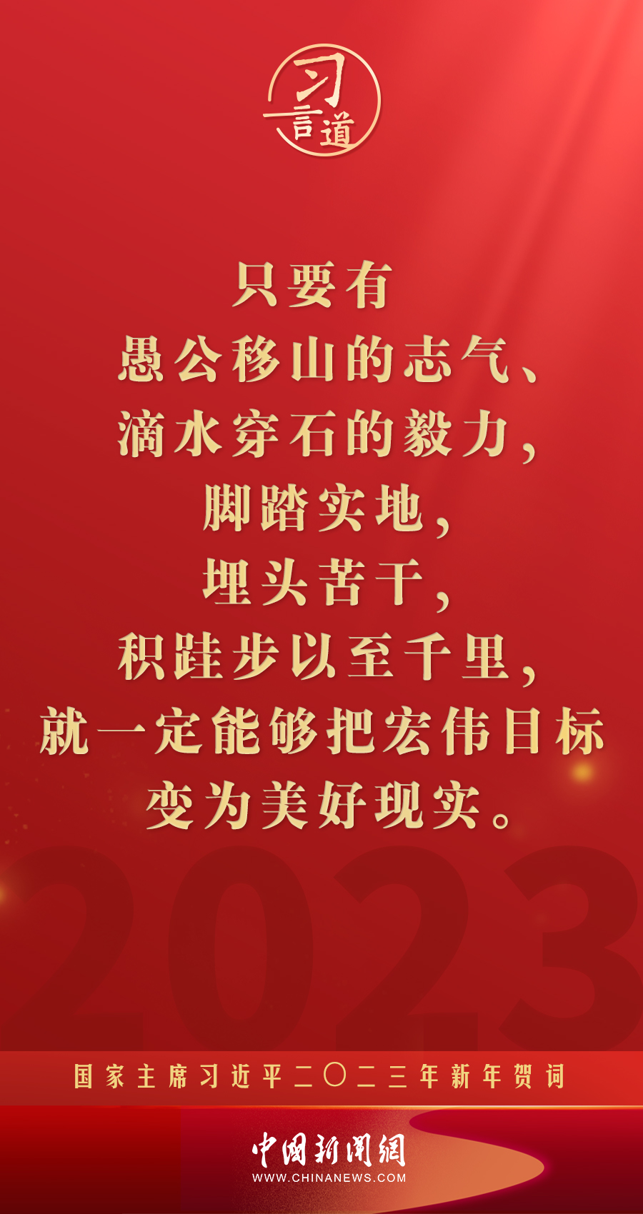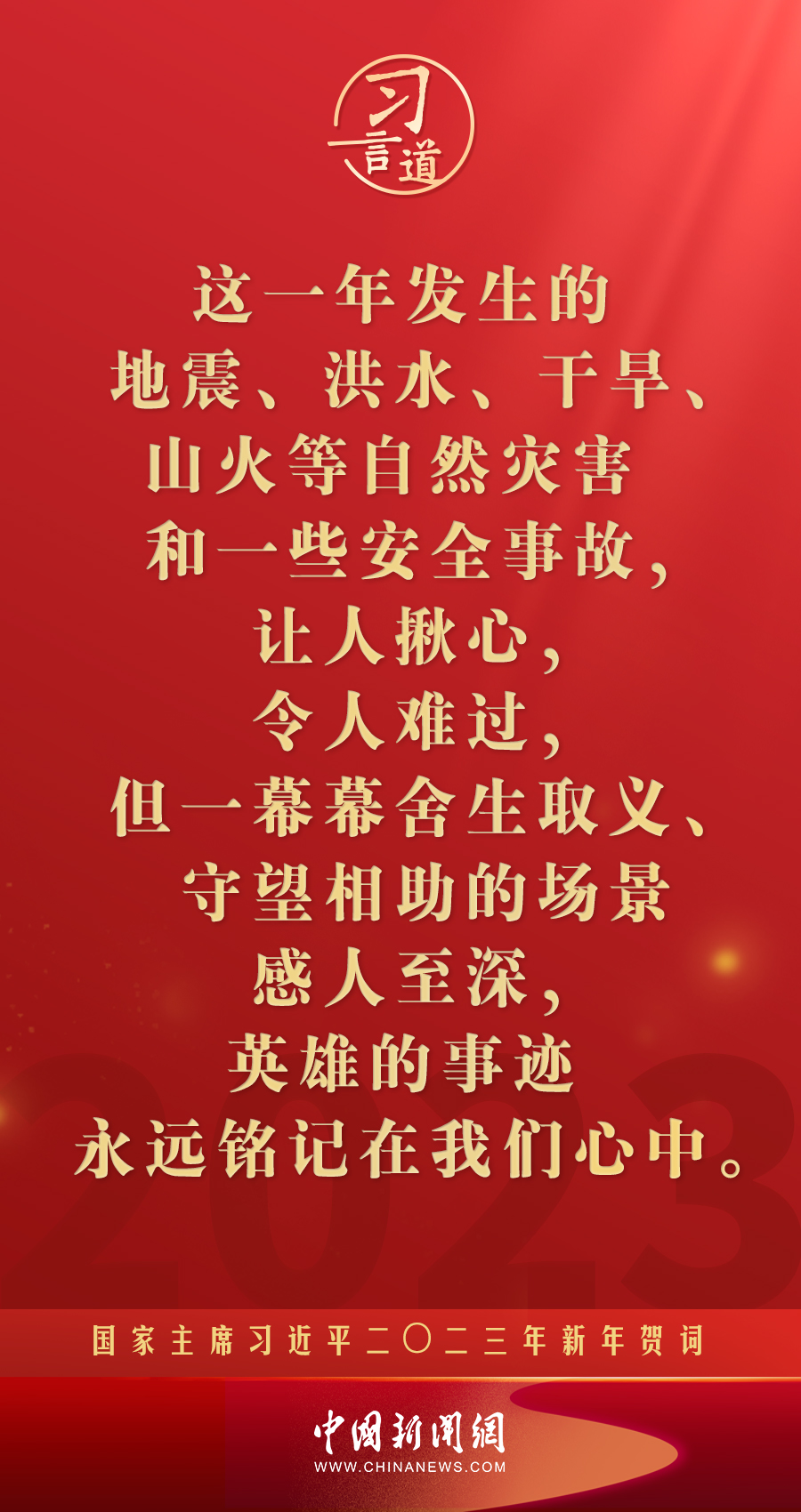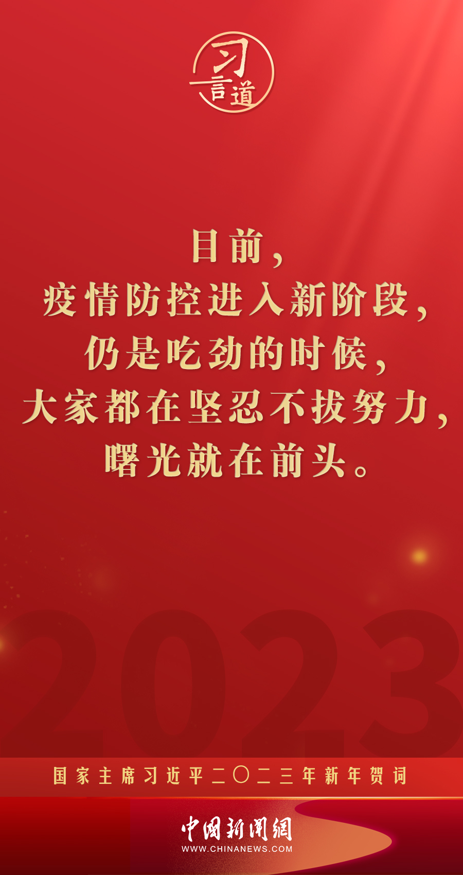 新年前夕,国家主席习近平通过中央广播电视总台和互联网,发表了二〇二三年新年贺词。他指出——