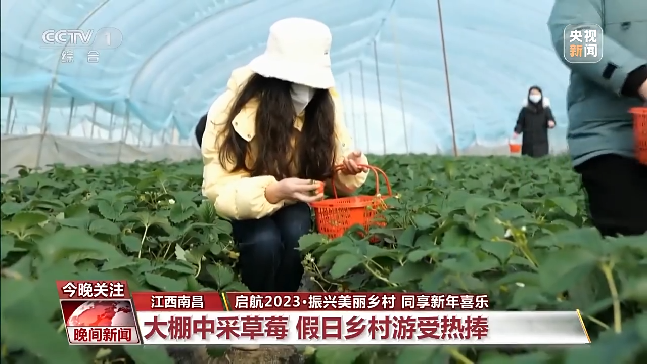 在江西南昌,眼下正是大棚草莓上市的季节,罗亭镇义坪村草莓基地里,三五成群的游客提着篮子,在田垄间小心翼翼地采摘新鲜草莓。
