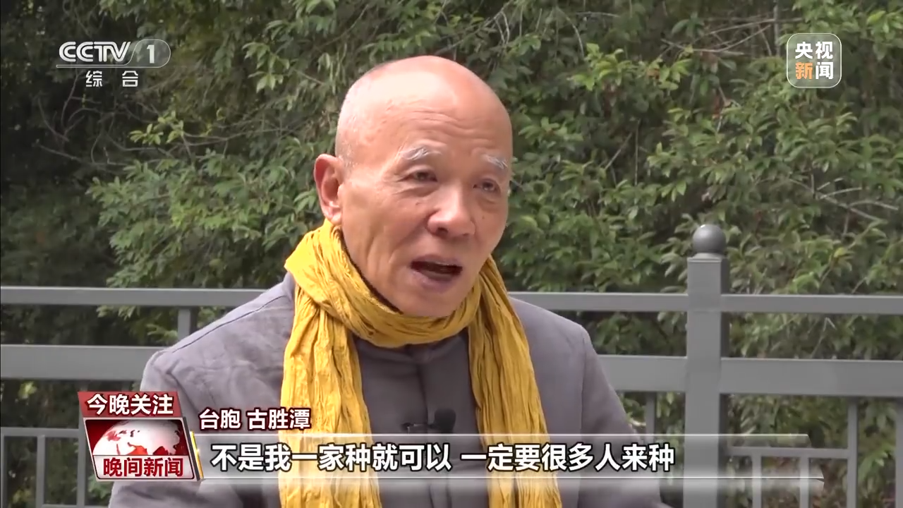 今年77岁的古胜潭来自台湾省台中市,1997年,他从台湾来到大陆投资农业项目。他说他每次回台湾,都会带上茶叶送亲友,以茶传情,希望两岸民间交流在茶香中传播开来。