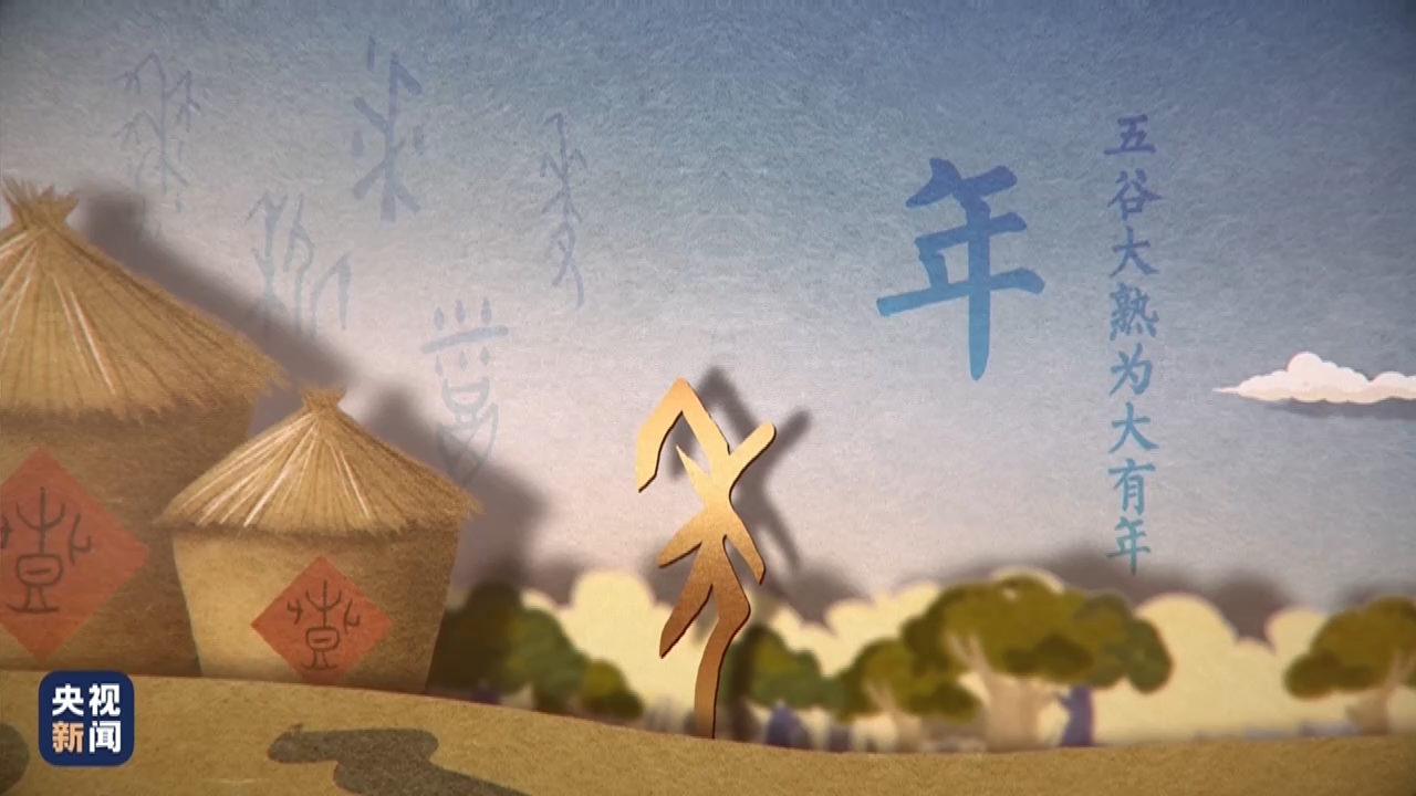 “年”字的形状像是一个人背着一捆谷物前行