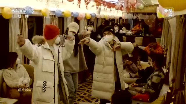 8车1号包厢,一位父亲带着两个孩子坐在里面。包厢里还有一位他们刚刚结识的滑雪者。父亲说:“我们从今往后过年赋予它新的意义,不在家里推杯换盏,我们能不能干一些有意义的事情,长一些本事。”
