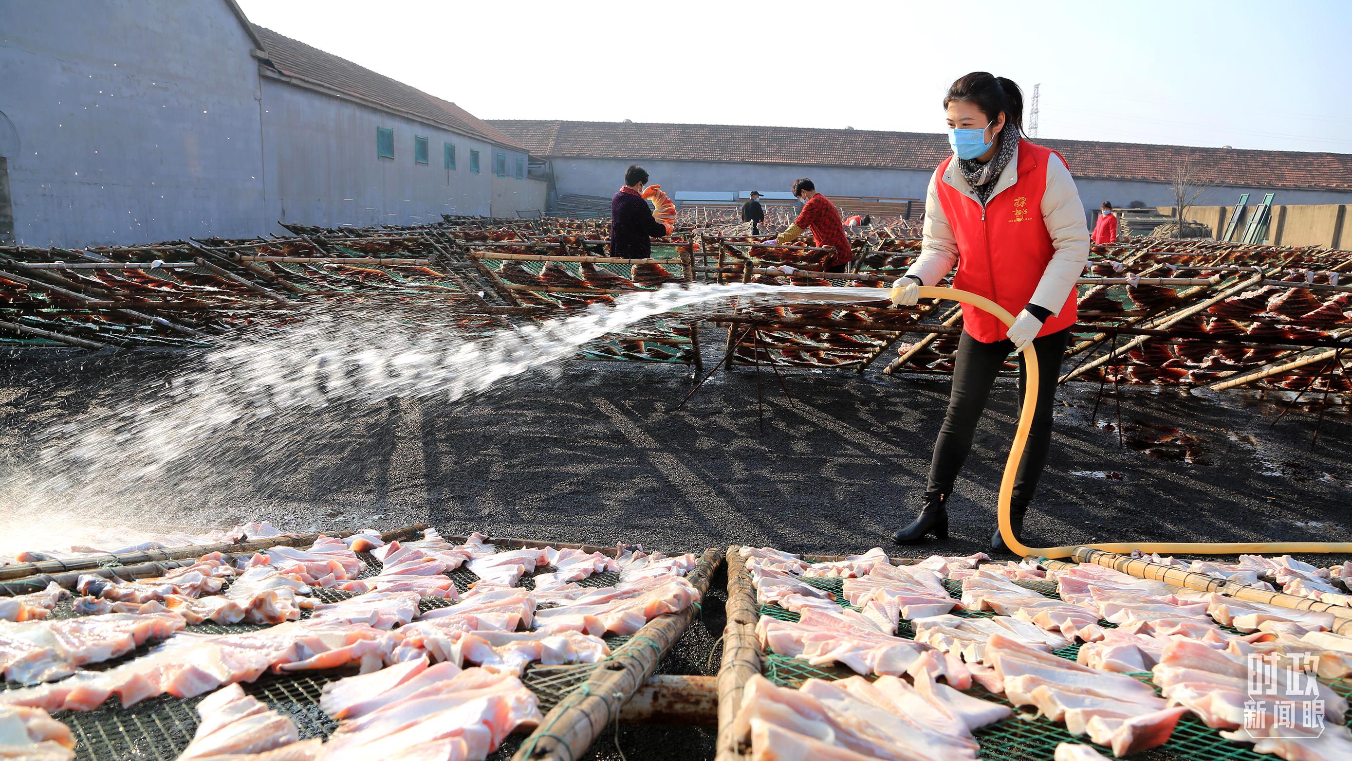 △2022年11月,江苏连云港的年轻干部正在帮助当地村民晾晒鳐鱼干。(图/视觉中国)