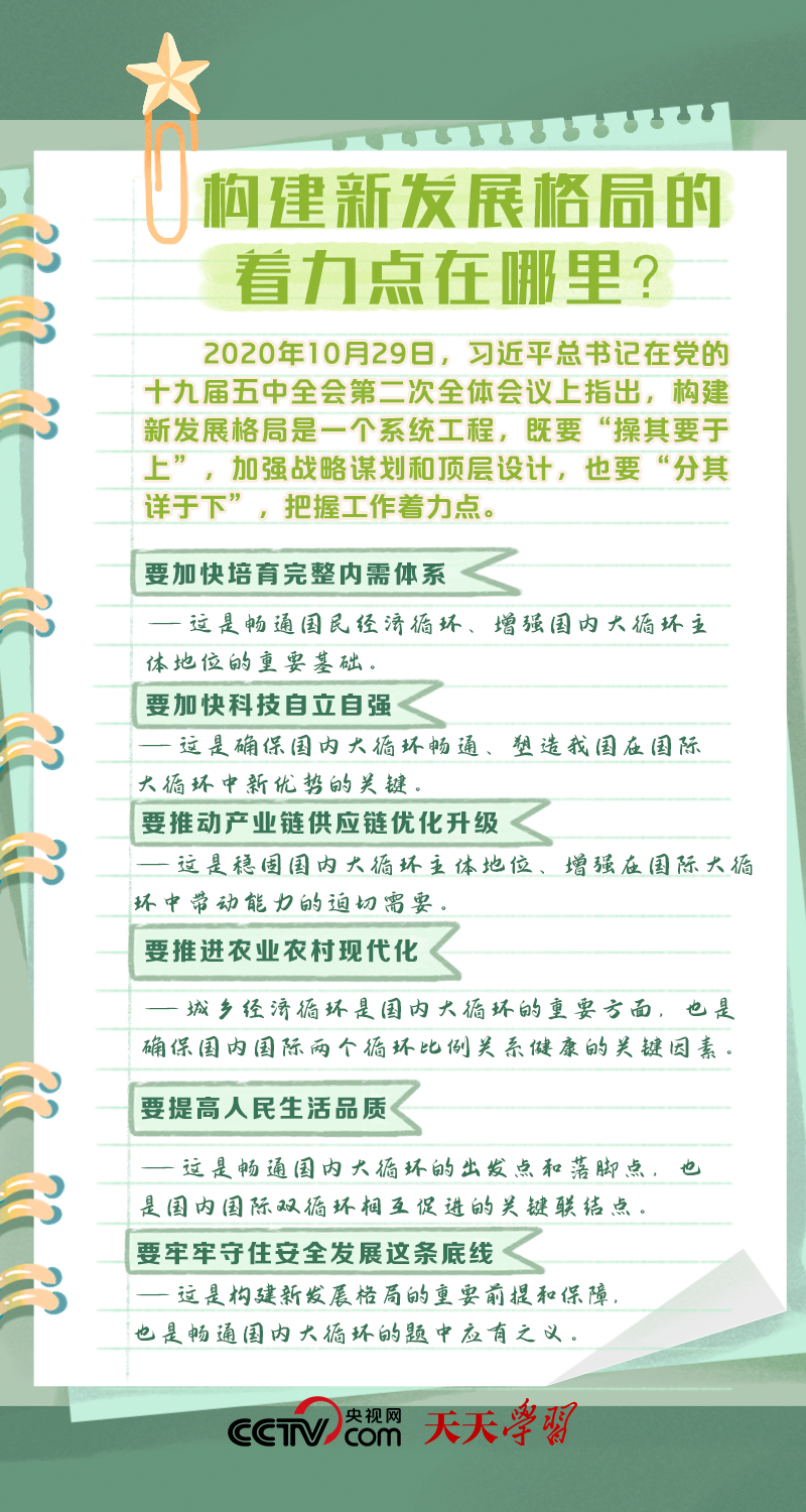 |天天学习|构建以国内大循环为主体、国内国际双循环相互促进的新发展格局,是根据我国发展阶段、环境、条件变化,特别是基于我国比较优势变化,审时度势作出的重大决策。构建新发展格局是事关全局的系统性、深层次变革,是立足当前、着眼长远的战略谋划。