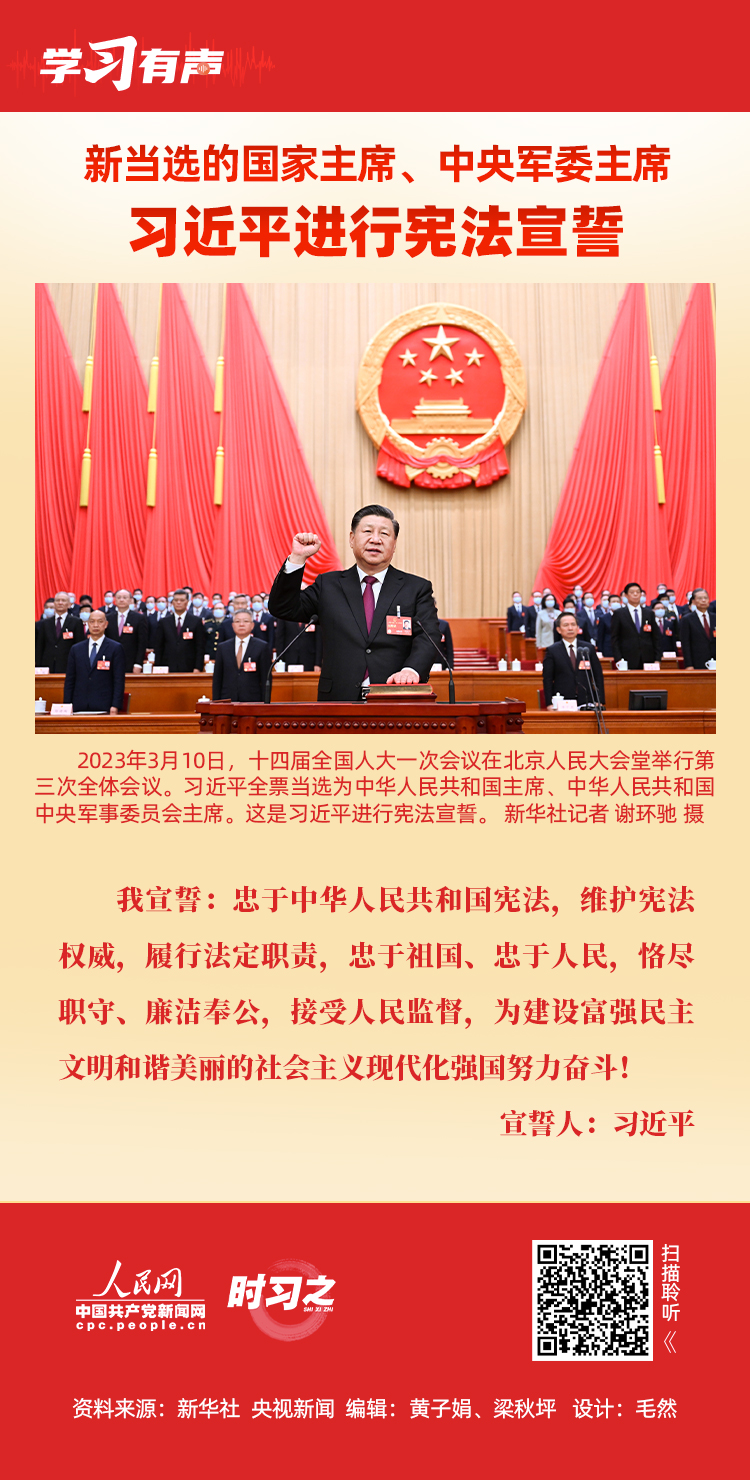 时习之·学习有声丨新当选的国家主席、中央军委主席习近平进行宪法宣誓