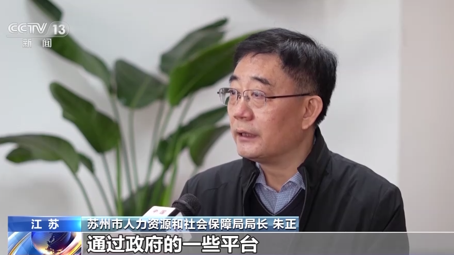 苏州市人力资源和社会保障局局长 朱正:我们通过数字化的手段,通过政府的一些平台,通过一些社会机构流量大的平台,联手开展合作,把直播带岗和我们的网站、微信小程序等等,都把它打好促就业“组合拳”。