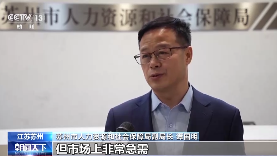苏州市人力资源和社会保障局副局长 谭国明:我们觉得国家的标准没出来,国家的考试试题也没出来,甚至于有时候国家的工种认定还没出来的时候,但市场上非常急需。所以我们和财政部门商量了一下,先制定了一个开展项目制培训的意见。