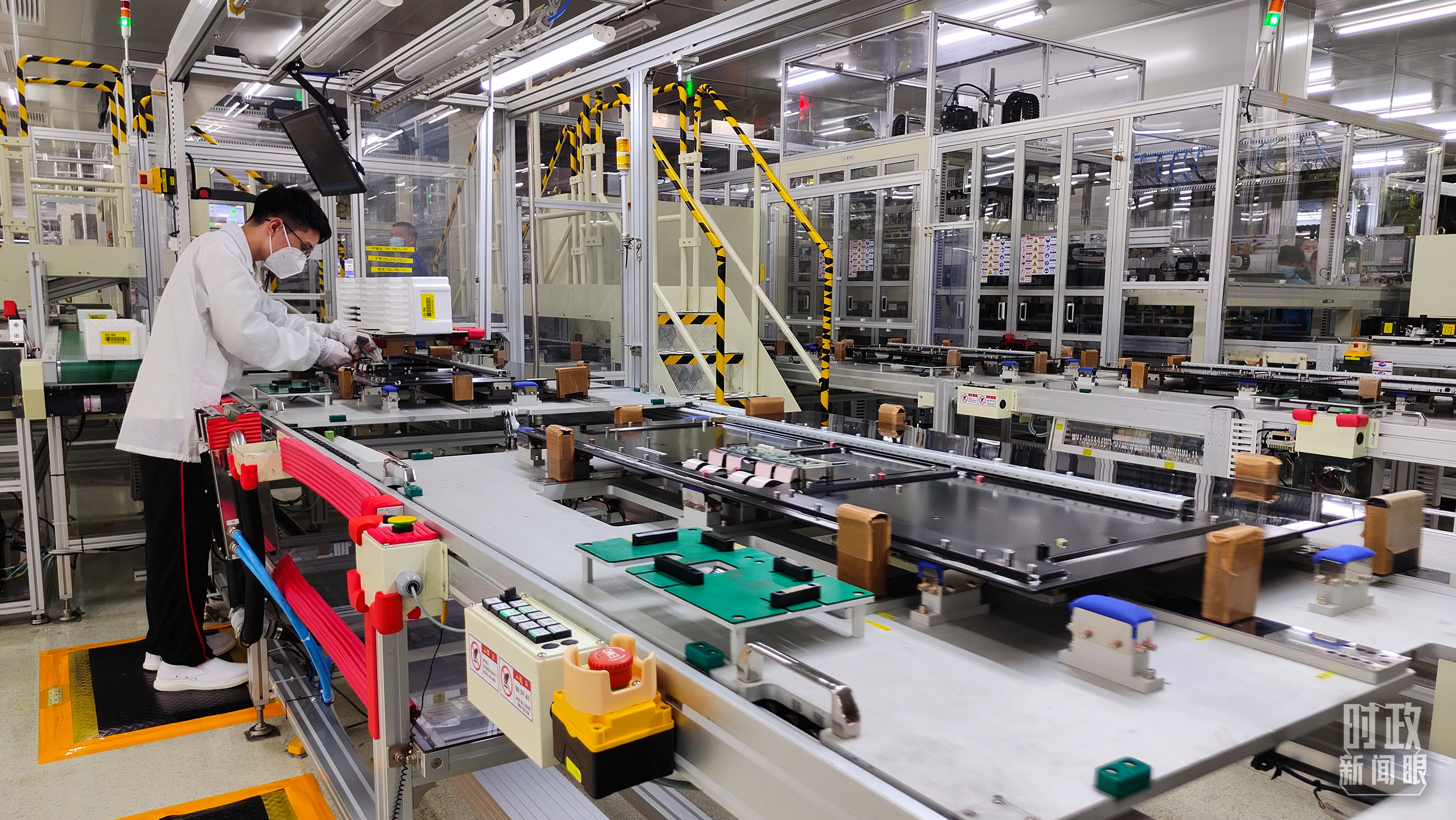 △显示面板背面组装生产线。(总台央视记者杨立峰拍摄)