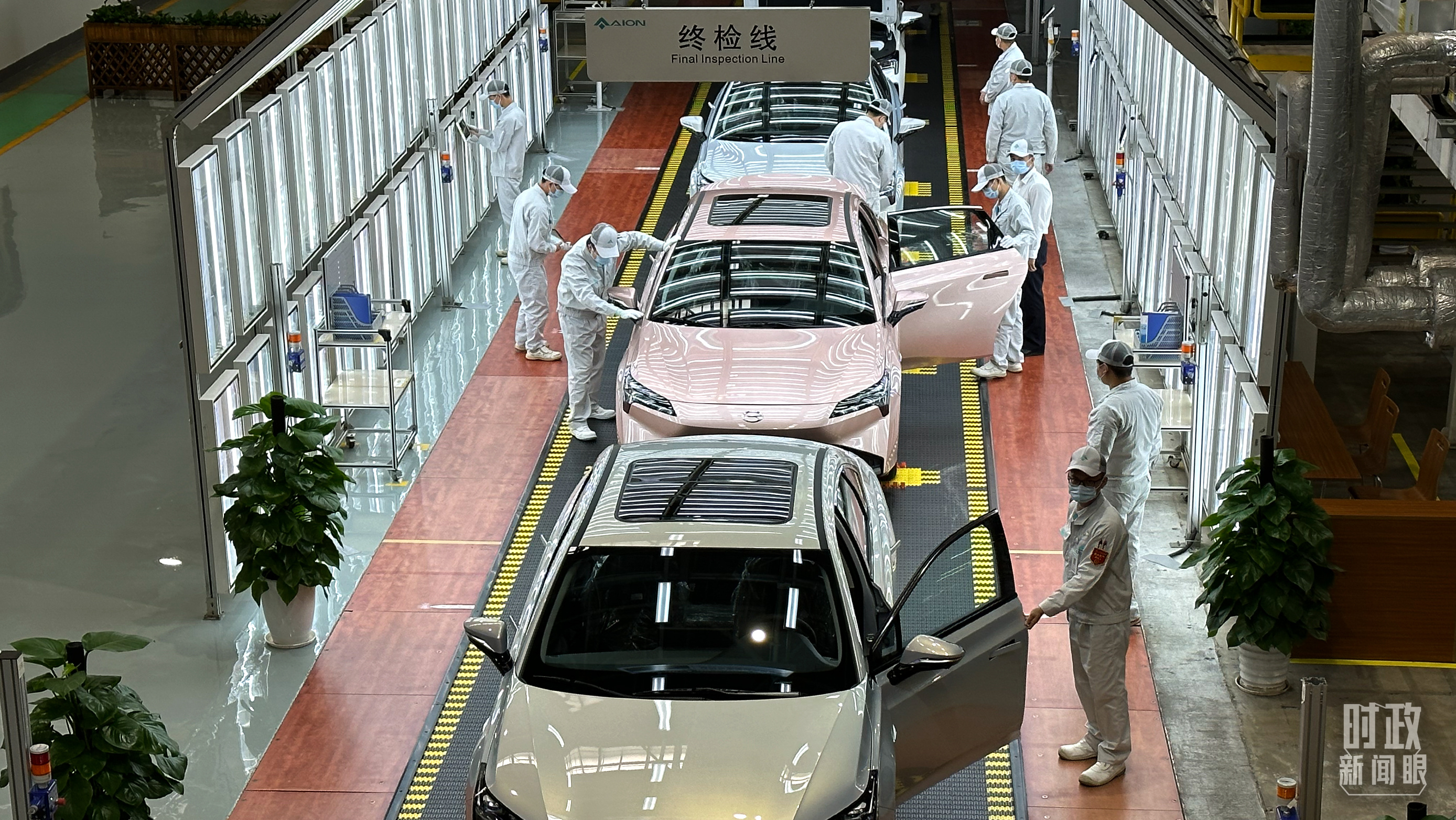 △广汽埃安总装车间终检线作业现场。(总台央视记者赵化拍摄)