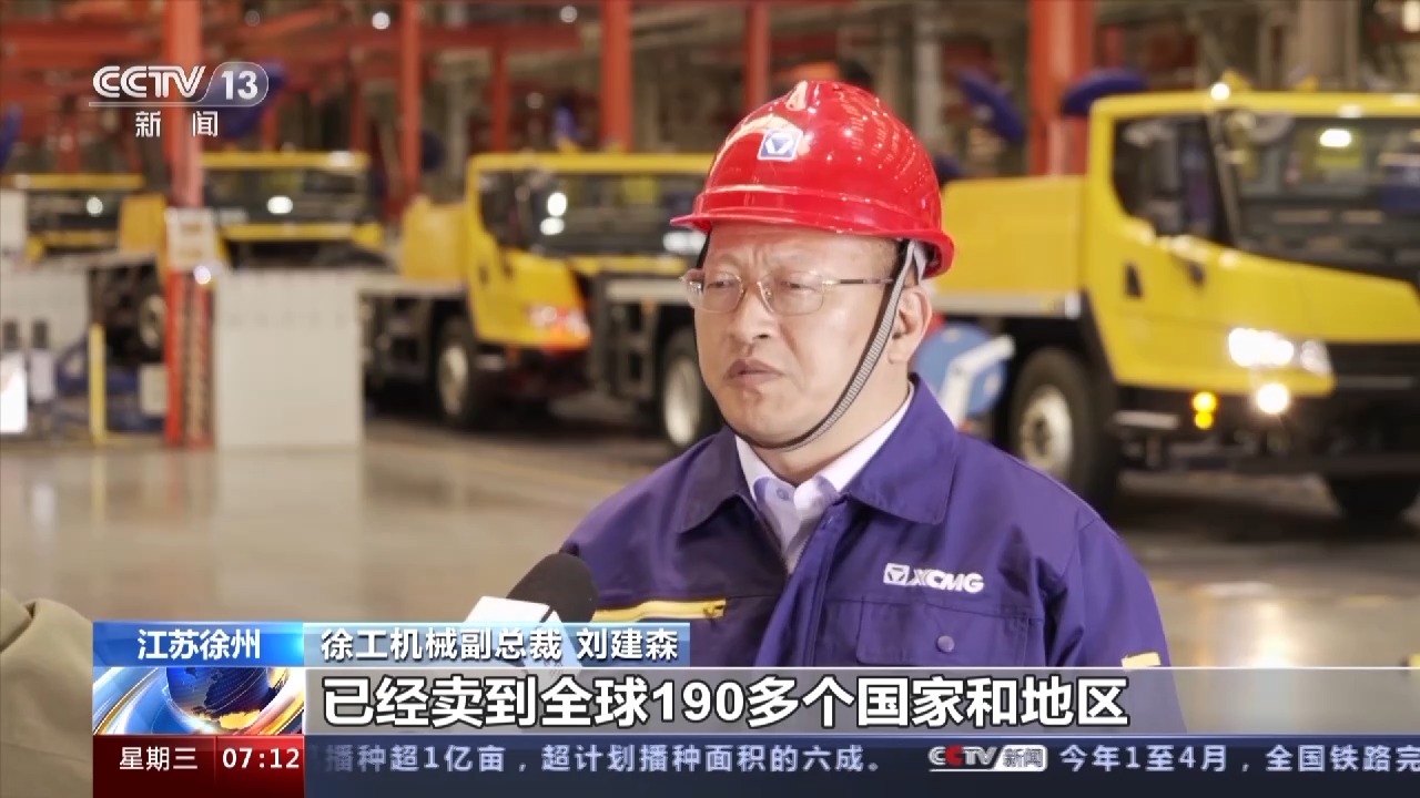徐工机械副总裁 刘建森:现在,我们的产品已经卖到世界190多个国家和地区。今年一季度,徐工国际化收入突破106亿元,创下单季度历史最高纪录,国际化收入已经占到我们营业收入的45%。现在,我们的产品已经卖到世界190多个国家和地区。今年一季度,徐工国际化收入突破106亿元,创下单季度历史最高纪录,国际化收入已经占到我们营业收入的45%。