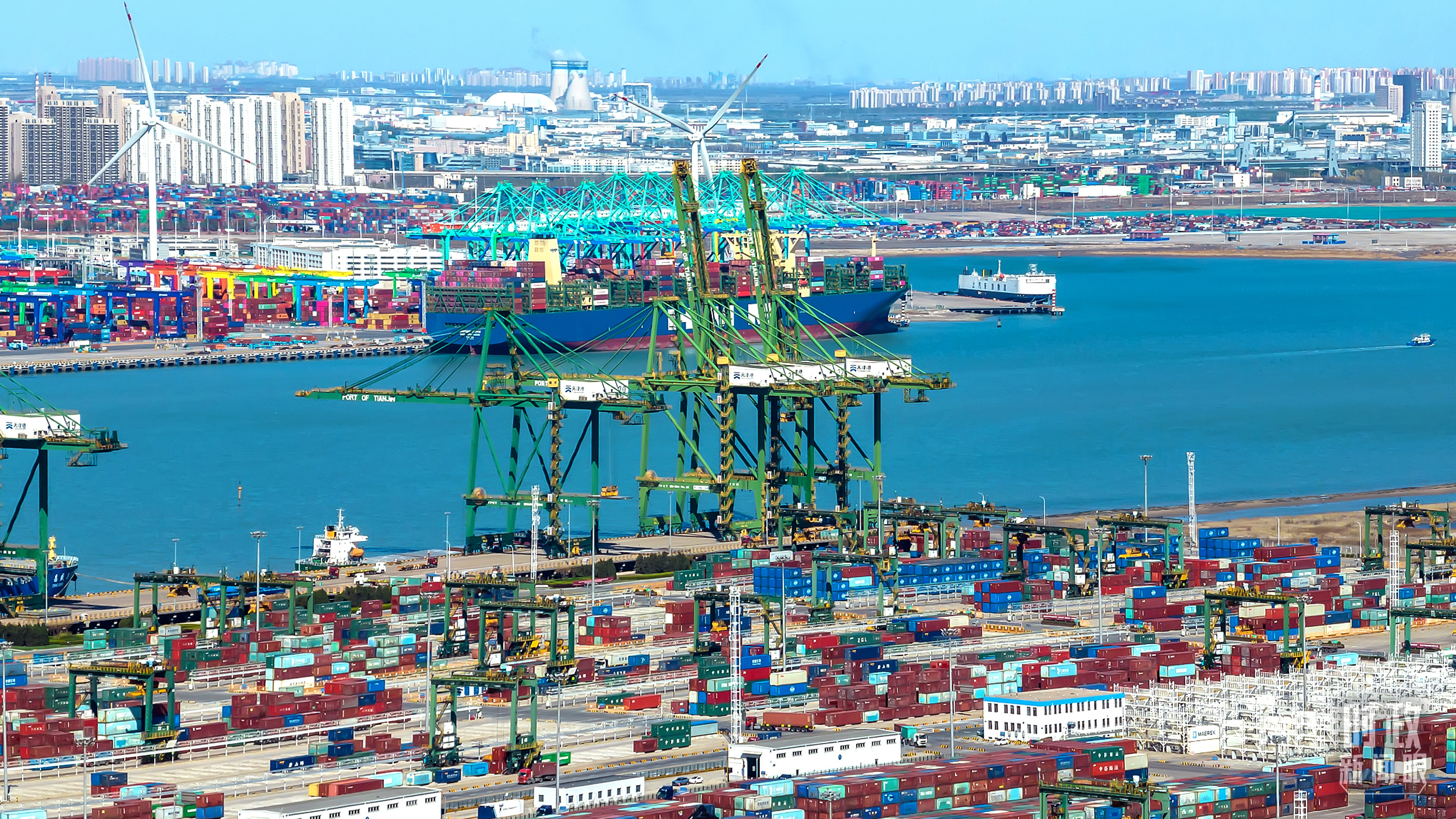 △俯瞰黄骅港。(总台记者郭永良拍摄)