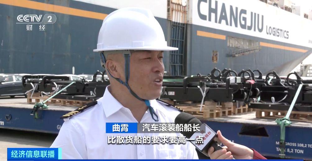 汽车滚装船船长 曲霄:上航次运了将近200辆新能源车。汽车滚装船操作上比散货船的要求要高一点。新能源车的运输市场也是迅猛增长,对这方面的人才需求在增长。