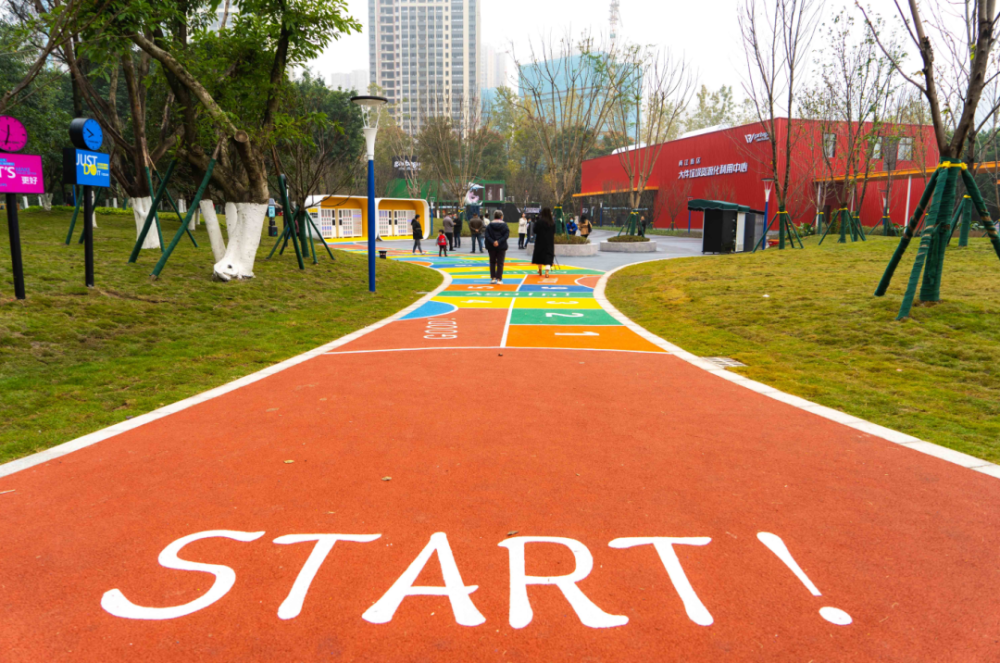 △重庆两江新区生活垃圾分类主题公园分类知识通关步道。该形式在寓教于乐中推广垃圾分类知识。