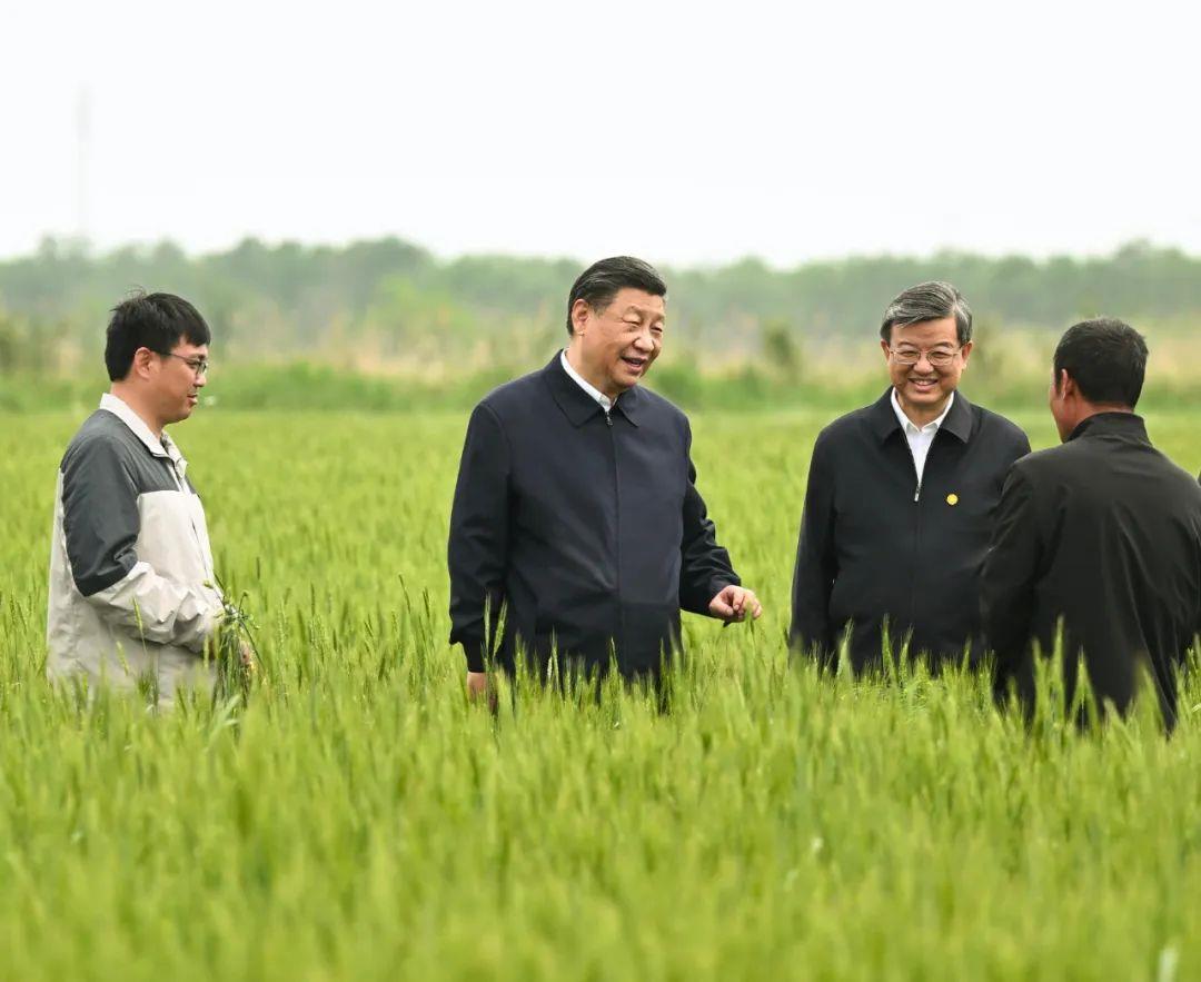 △2023年5月11日,习近平总书记在河北沧州黄骅市旧城镇仙庄片区旱碱地麦田考察。