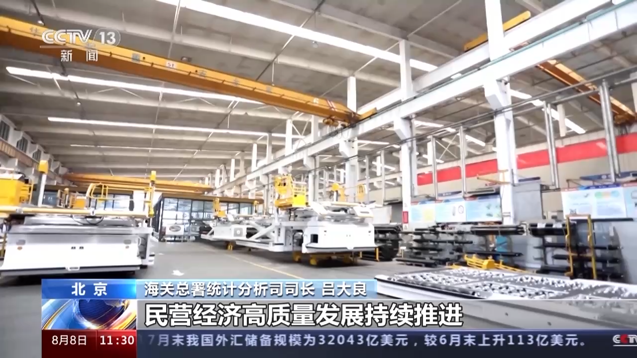 海关总署统计分析司司长 吕大良:今年以来,民营企业进出口增速高于整体,占比进一步提升,参与外贸的民营企业数量不断增加,前7个月达到47.8万家,同比多了3.6万家。近期,关于促进民营经济发展壮大的意见发布实施,民营经济高质量发展持续推进,民营企业的国际竞争力将进一步提高。