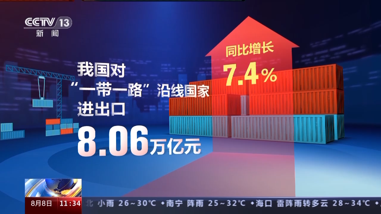 我国对“一带一路”沿线国家进出口8.06万亿元,同比增长7.4%,占我国外贸比重同比提升2.2个百分点至34.2%,国际市场更加多元化。