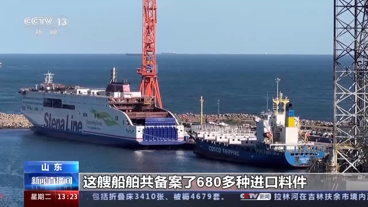 威海海关驻海港办事处船舶监管科科长 蔡海林:这艘船舶共备案了680多种进口料件,原计划交付周期是今年年底,为了压缩交付周期,我们和企业一起加快手册备案、零部件通关和供船物料周转的速度,目前手册完成进度已经超过了90%。