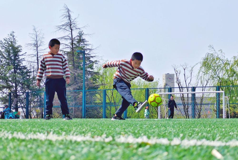 △2023年4月9日,小朋友在山东青岛市即墨区一处“口袋公园”游玩。