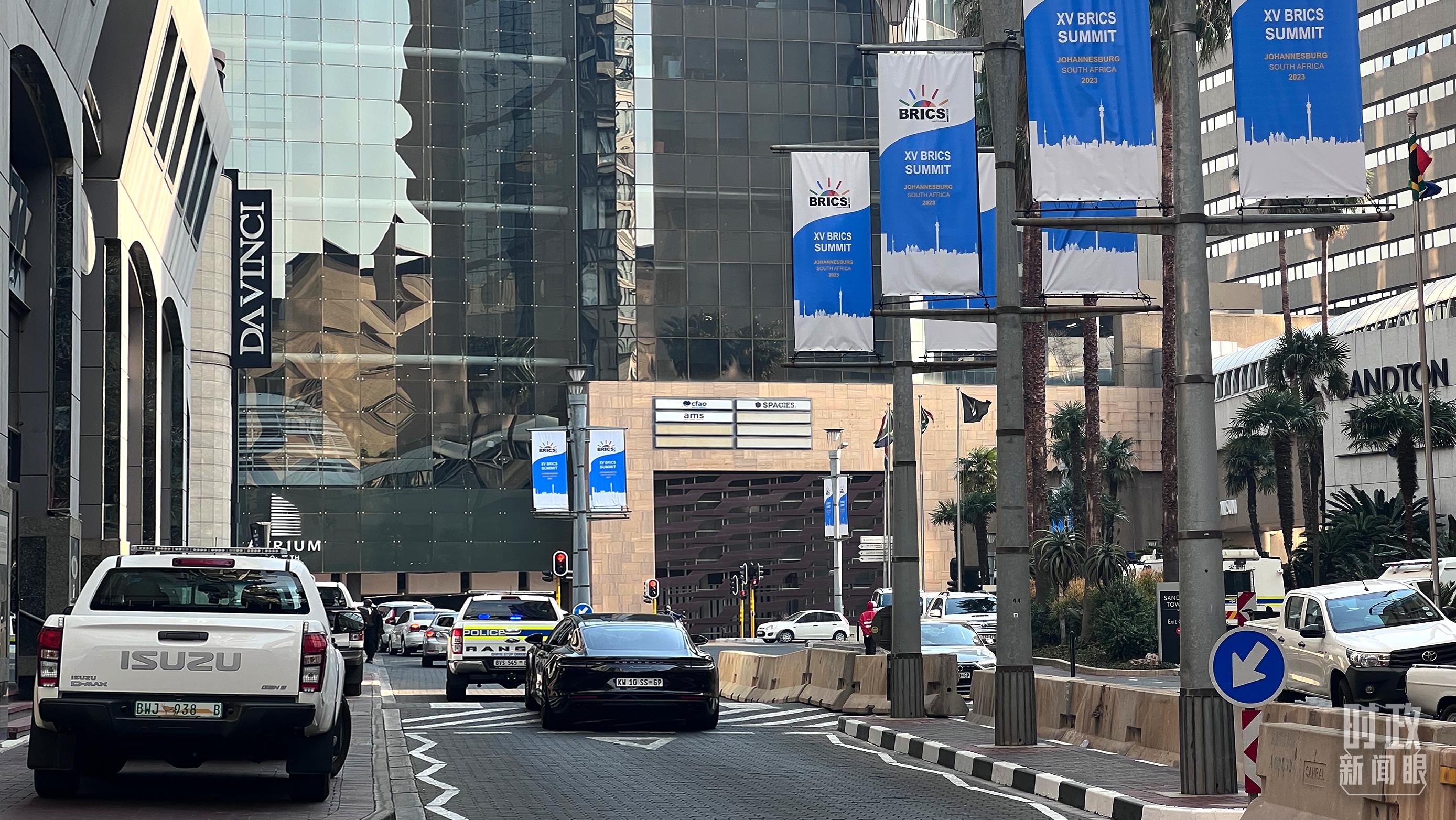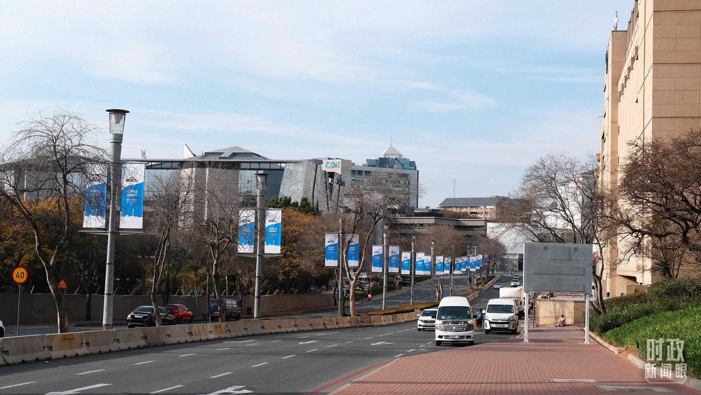 △约翰内斯堡,街头悬挂金砖峰会条幅。(总台央视记者卢心雨拍摄)