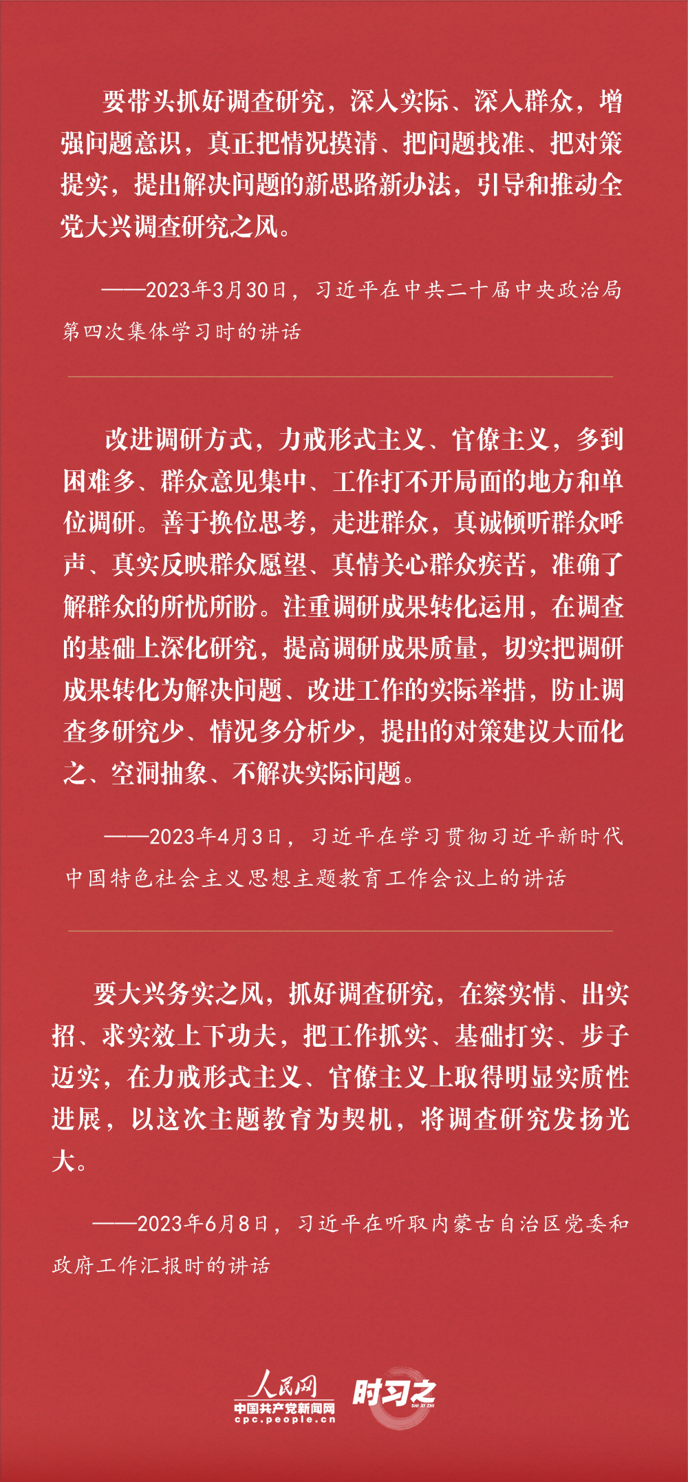 这次主题教育中,大兴调查研究是重要内容和鲜明特点。“扑下身子、沉到一线,深入农村、社区、企业、医院、学校、‘两新’组织等基层单位,把脉问诊、解剖麻雀,进行问题梳理、难题排查,运用党的创新理论研究新情况、解决新问题”,习近平总书记对广大党员干部特别是各级领导干部深入调查研究提出明确要求。