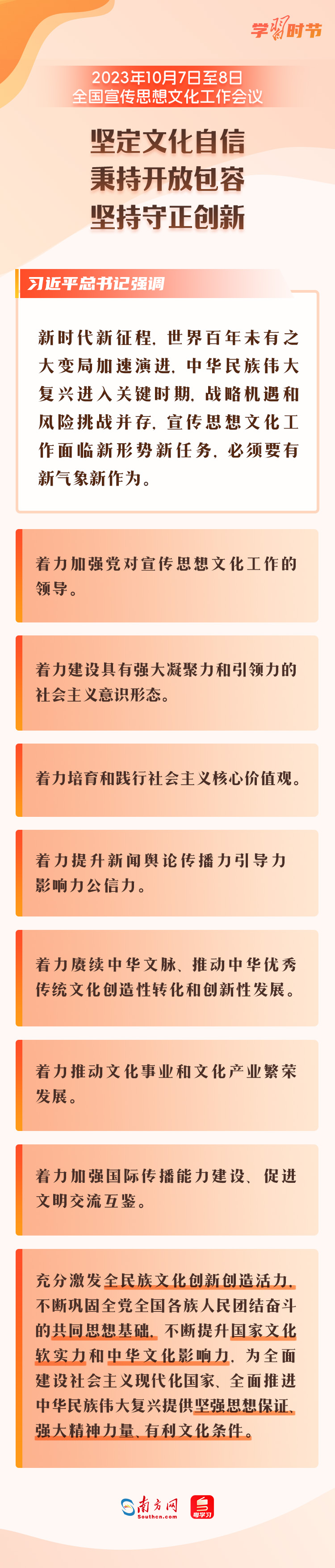 10月7日至8日,全国宣传思想文化工作会议在北京召开,会上传达了习近平总书记关于宣传思想文化工作的重要指示,首次提出了习近平文化思想。