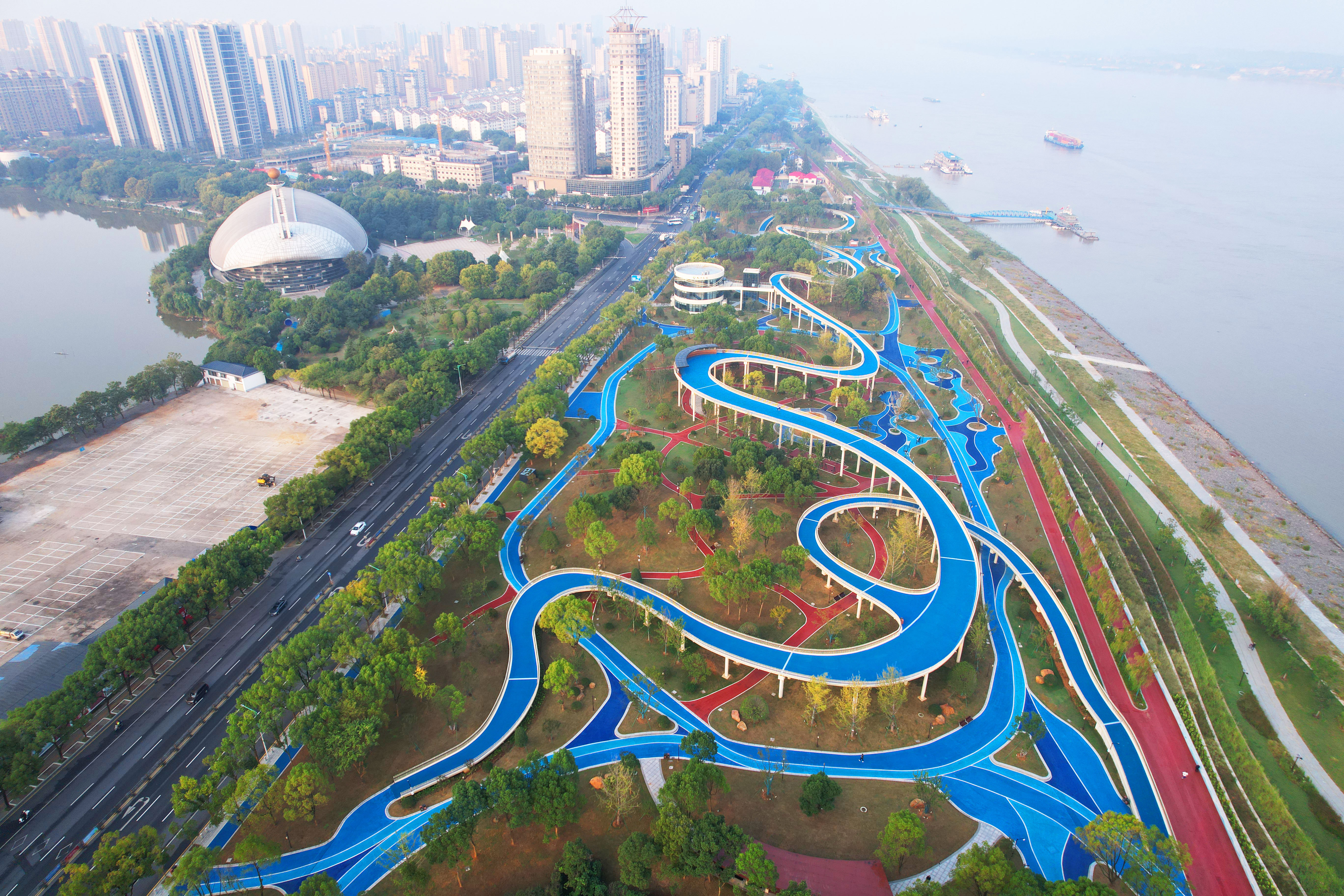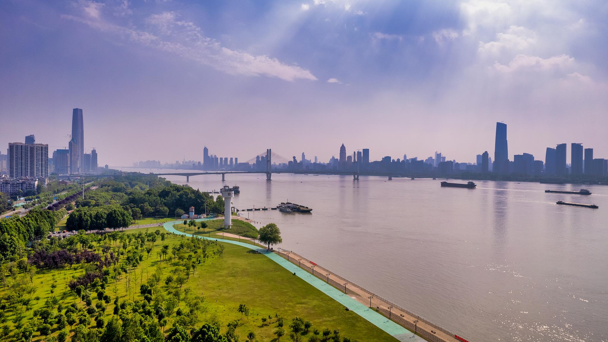 △俯瞰长江国家文化公园九江城区段。(总台记者李海峰拍摄)