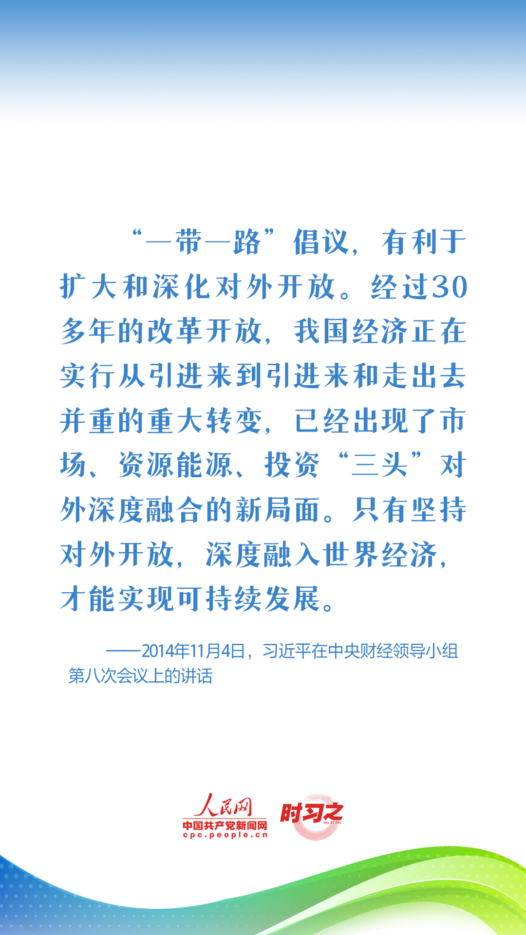 “‘一带一路’倡议,有利于扩大和深化对外开放。”习近平主席多次强调坚持对外开放的重要性,在扩大对内对外开放中强动力、增活力,将“一带一路”建成开放之路。