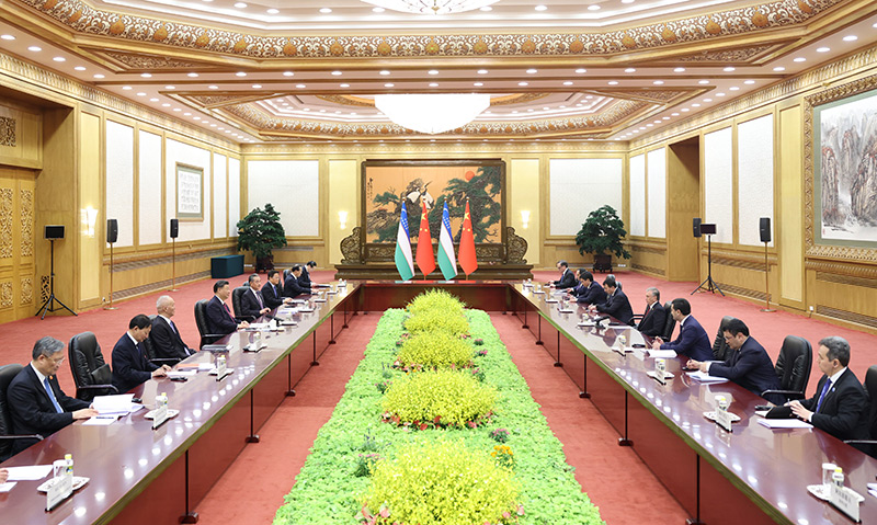 习近平指出,今年5月,我们在西安成功会晤,就两国关系发展达成的重要共识正在得到全面落实。中国正在以中国式现代化全面推进强国建设、民族复兴。乌方出台“乌兹别克斯坦-2030”战略。两国发展目标相似,理念契合。中方愿以共建“一带一路”倡议提出10周年为契机,同乌方在国家现代化进程中互学互鉴、相互支持、彼此成就,携手建设中乌命运共同体,为地区和平和繁荣注入更多确定性和正能量。