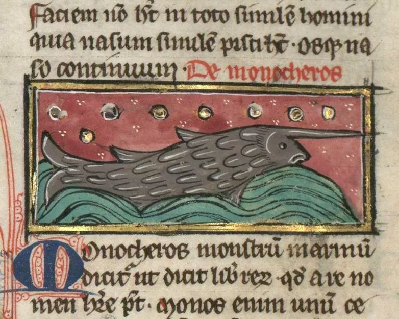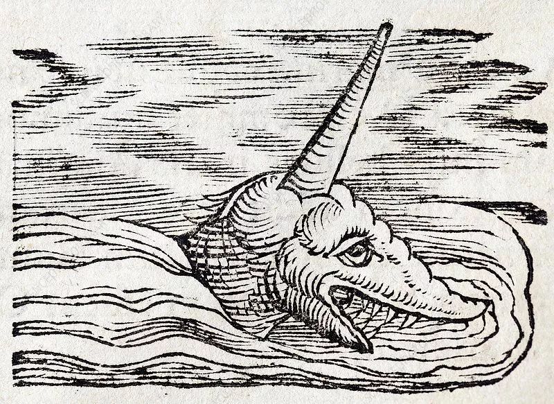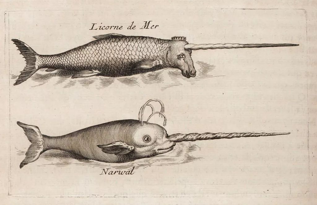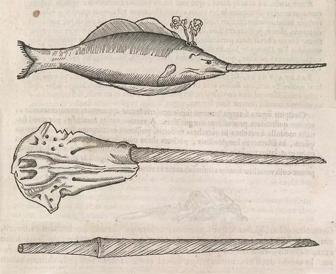 独角鲸,即“海中独角兽”,源自康拉德·格斯纳(Conrad Gesner)所著的Historia animalium(1558年)。