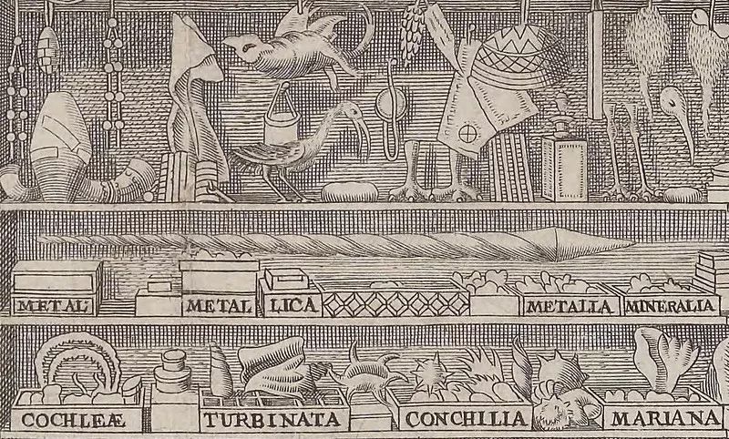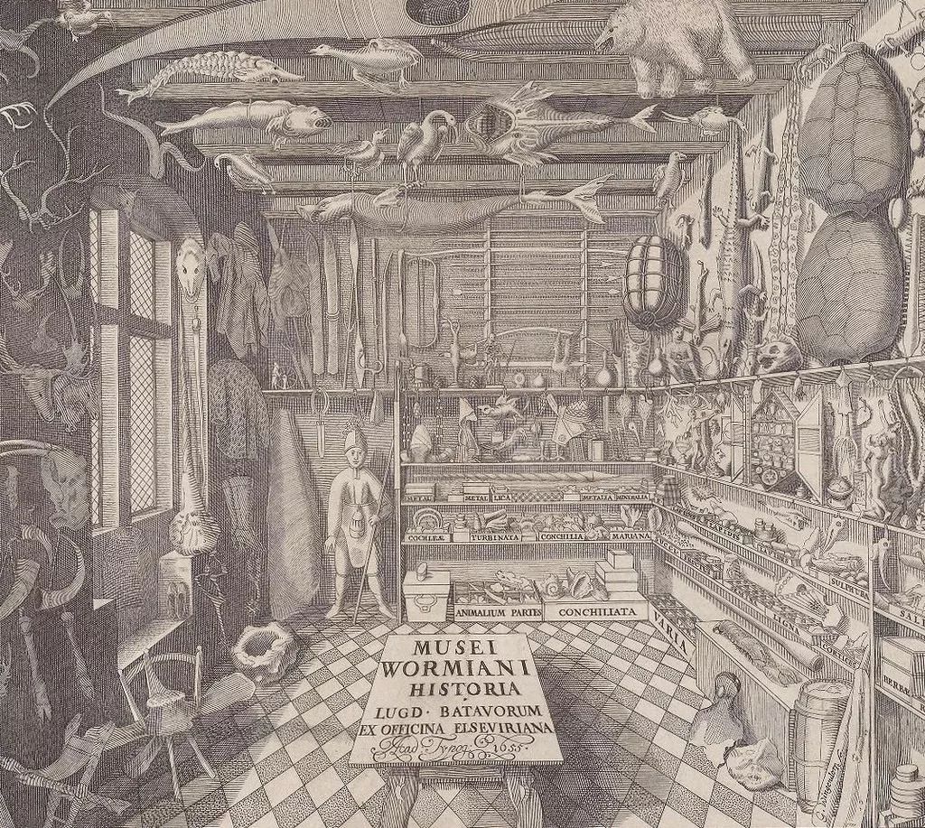 欧勒·沃姆的珍奇柜绘图,展示于他的Wormianum博物馆。? biodiversitylibrary