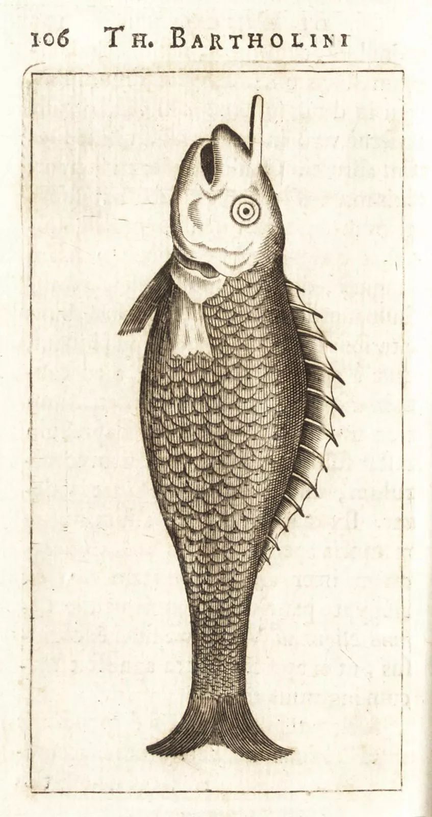 类似独角鲸的生物的插图,源自托马斯·巴托林所著《独角兽新观察》1678年版。