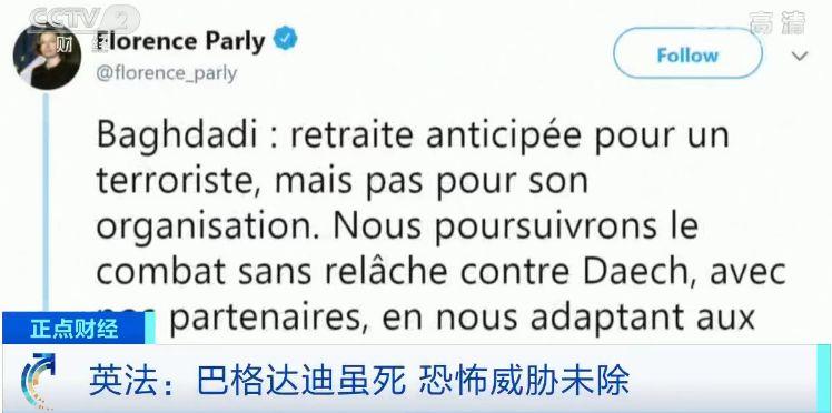 法国总统马克龙、法国国防部长帕利、英国首相鲍里斯?约翰逊和英国外交大臣拉布当天也纷纷在社交媒体上发文表示,巴格达迪之死固然可喜可贺,但这并不意味打击极端组织的战役取得了最终胜利。