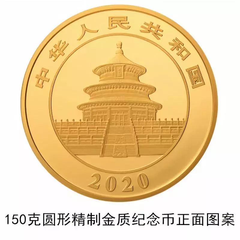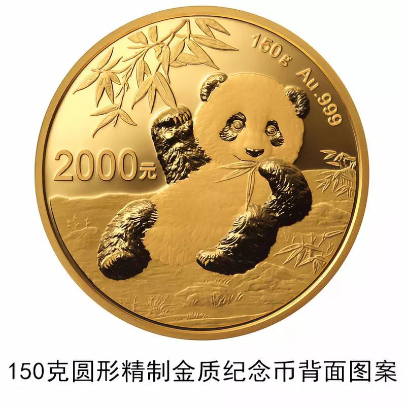 150克圆形金质纪念币为精制币,含纯金150克,直径60毫米,面额2000元,成色99.9%,最大发行量10000枚。