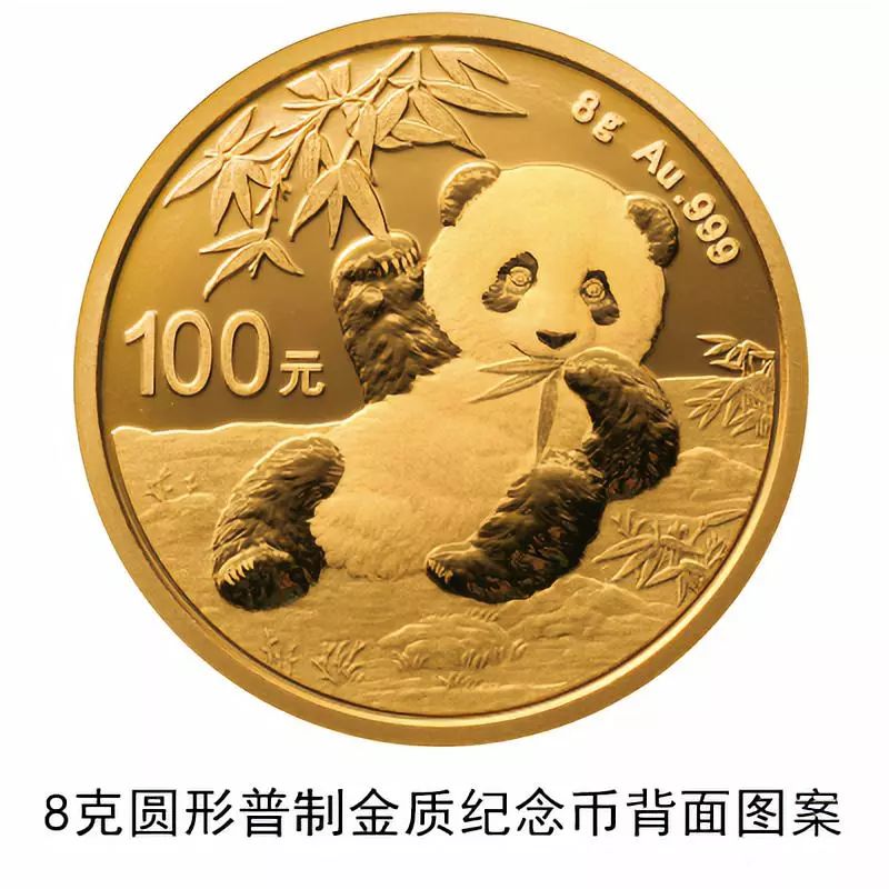 8克圆形金质纪念币为普制币,含纯金8克,直径22毫米,面额100元,成色99.9%,最大发行量600000枚。