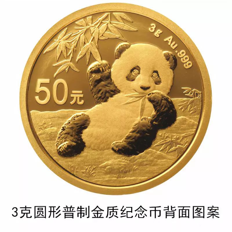 3克圆形金质纪念币为普制币,含纯金3克,直径18毫米,面额50元,成色99.9%,最大发行量800000枚。