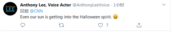 “就连我们的太阳都沉浸在万圣节的气氛当中。”↓