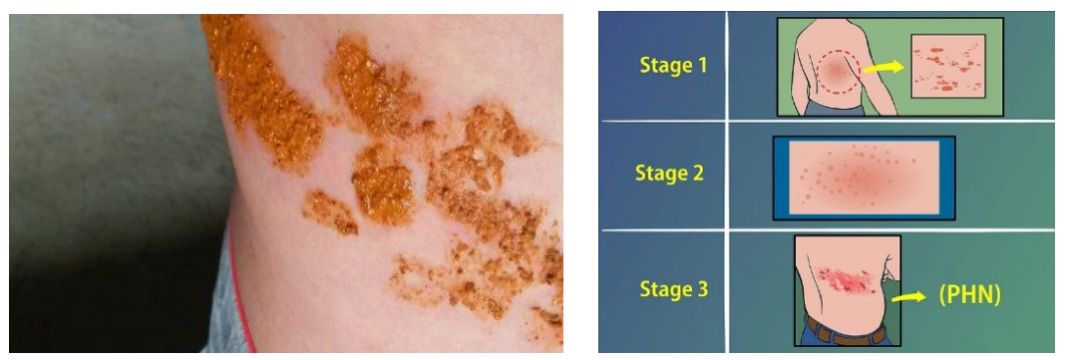 带状疱疹在人群中的发病率为30%,其中高达20%的患者发展为带状疱疹后遗神经痛(PHN)。在1-3个月的急性期皮疹愈合后,常遗留灰白色的瘢痕。瘢痕区的疼痛分为两种类型:一种是稳定的烧灼样痛或酸痛,另一种是阵发性电击样疼痛。这两种类型的疼痛均可自发出现,而且常因与病变皮肤的刺激而加重,如极其轻微的衣物摩擦甚至风吹都无法忍受。超过6个月后一般就可定义转为慢性疼痛,此时往往无疗效持续的治疗与根治方法,患者长年累月经受疼痛与精神的双重折磨,生活质量显著降低。