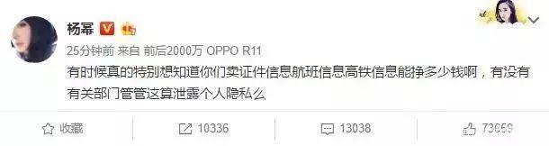 艺人们的行程航班信息经常被泄露,还形成了一条产业链,有非法人员通过倒卖明星航班信息赚外快!杨幂就发博斥责过此事,语气中带着愤怒与无奈。