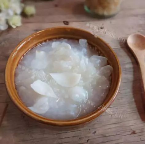 阴虚咳嗽:干咳少痰,咽干,手足心热,舌红,苔少或花剥。百合银耳粳米粥:银耳先浸泡,粳米、新鲜百合加入适量冰糖同煮。
