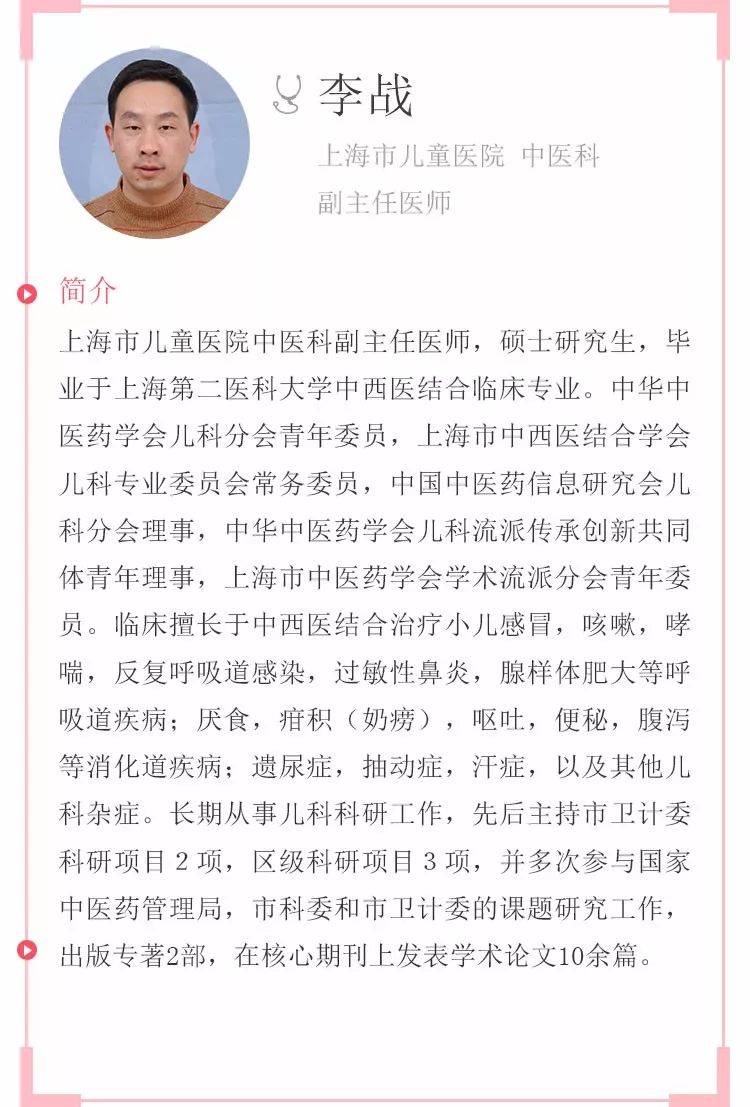 中医认为患儿慢性咳嗽多与肺脾肾不足,痰湿内停有关,在治疗上注重健脾益肺,理气化痰,在治疗方法上可以采取中药内服,或者穴位敷贴,或者膏方调理。本次儿童健康大讲堂,我们再次请到上海市儿童医院中医科李战副主任医师,他将着重从中医的角度,来帮助家长了解慢性咳嗽的原因,以及在危险的秋冬季节,我们该怎么来预防儿童慢性咳嗽发作。