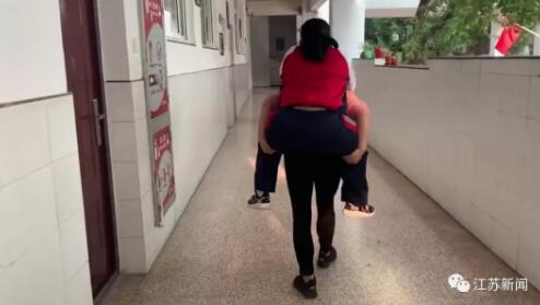 从家距离学校大约一两公里,豆妈每天至少来回4趟。从小学一年级背到六年级,再到如今豆豆已经是扬州市文津中学一名初二年级的学生,这一背就是8年。每天上下楼,妈妈背着她;去洗手间,妈妈背着她……