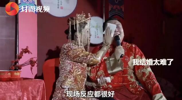 在安徽阜阳,一位新郎在婚礼现场大哭表白新娘,现场视频在网络上热传开来,在视频中,新郎一边大哭一边说道:“结婚太难了”“我当了7次伴郎了,终于结婚了”“他们每次结婚,我都闹他们,今天我结婚他们闹我,我一点都不难受,我特开心!”“我上辈子肯定拯救了银河系”“太喜欢她了,她对我太好了”“我丈母娘太好了!每顿饭吃得都像过年”旁边的新娘则是一边给他递纸巾擦眼泪一边笑着听新郎说话,台下的宾客也被新郎这一幕逗笑了。