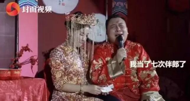 @蝙蝠:哈哈哈!很少看到结婚新郎哭得稀里哗啦,新娘在旁边递纸巾的。能当七次伴郎,说明新郎人缘不错,性格应该很好。