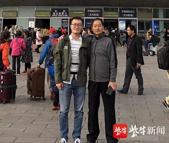 临别前,父子俩在北京西站南广场留下了一张合影。