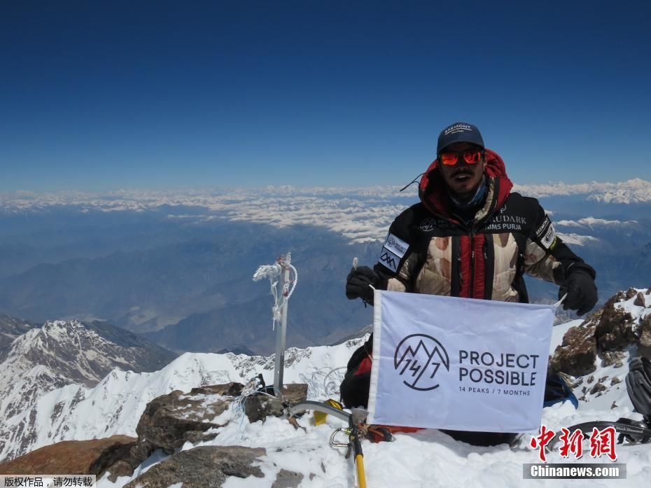 据美联社报道,来自加德满都七峰徒步旅行社的尼泊尔登山家明玛?夏尔巴为本次登峰的探险队提供装备。夏尔巴说,今年36岁的普尔亚健康状况良好,已经从峰顶安全下来。 登山专家称,这项记录是登山史上的一项重大成就。(资料图)