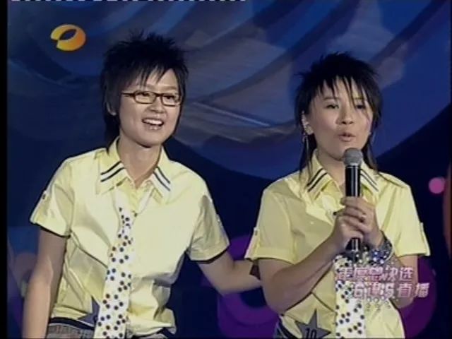 2005年《超级女声》中16岁的黄雅莉(右)