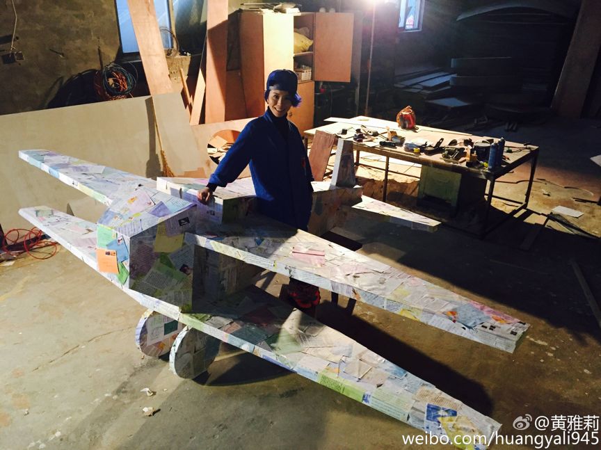 收到粉丝的来信,她做成了一架大的纸飞机。