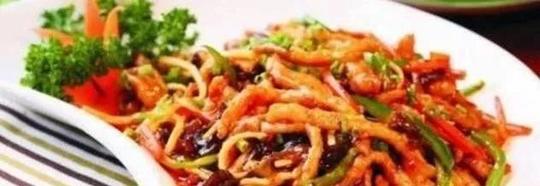 食材:里脊肉300克、冬笋3根、木耳、鸡蛋清、食盐、酱油、姜、蒜、料酒、米醋、淀粉、小葱2棵、泡椒、白糖、油。