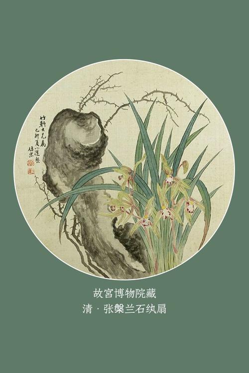 "纨扇上描绘了山石幽兰的清雅景致,画家用墨画出岩石,石面略作皴擦,显得古朴沉稳。一旁幽兰盛开,兰叶向外柔和地伸展,呈飘逸之态。整幅画设色素雅,用笔简放,显现出文人雅士的闲情逸致。"