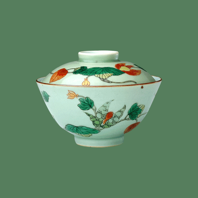 清·康熙款冬青地五彩酸浆果纹盖碗