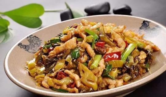 5、放大蒜籽和酸菜下锅翻炒片刻再放油渣翻炒。